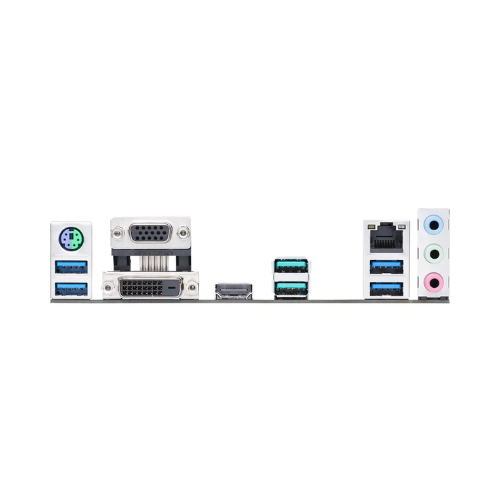 Conexões traseiras: 3x Conectores 3.5mm P2, 1x Porta DVI-D, 1x Porta HDMI, 1x Porta VGA (D-SUB), 1x Portas PS/2 Combo, 1x Porta RJ-45, 4x Portas USB v3.0, 2x Portas USB v3.2
